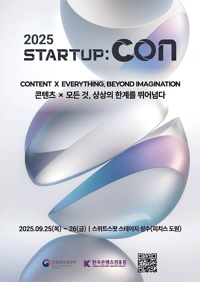 문화체육관광부와 한국콘텐츠진흥원은 '2025 스타트업콘(Startup:CON)'을 9월 25일(목)부터 26일(금)까지 2일간 서울 성수동 피치스 도원(스위트스팟 스테이지 성수)에서 개최한다.