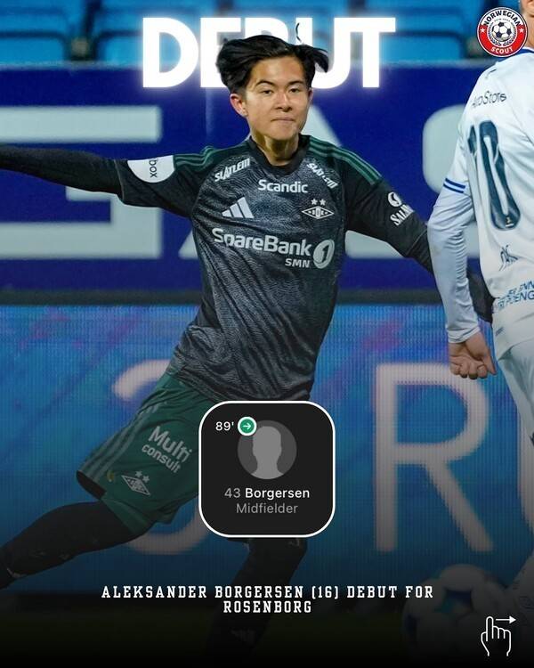 그러면서 "보르게르센은 이미 몇 차례 엔트리에 포함됐다. 23인으로 구성된 명단에도 몇 번이고 이름 올렸다"라며 "15일 밤 FK 헤우게순 원정 경기는 진짜 데뷔전이 됐다. 그는 후반 44분 교체 투입되며 그라운드를 밟았다"라고 설명했다.