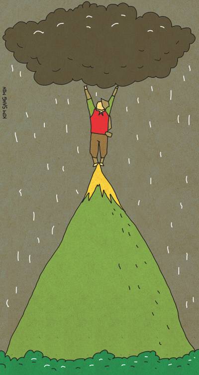 하늘의 물 공급에 곱다시 코가 꿰인 지상의 세계. 그 한 방울 끊기면 꼼짝을 못한다. 바다에 물이 아무리 가득해도 어쩔 수가 없다. 쫄딱 젖은 채 삼만보가 넘는 강행군을 마치니 어느새 어둑한 저녁. 여전한 침묵의 ‘禁亂’. 비 그친 일주문 아래를 다시 지나자니 이런 궁리가 저절로 일어났다. 오늘의 등산은 오전의 어지러운 심사를 오후에 다스린 청옥산의 난이었군.