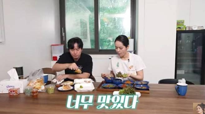 한가인은 상추에 밥과 된장을 얹으며, 연정훈은 타코를 입에 넣고 각자 식성대로 먹으며 즐거워하는 모습을 보였다.
