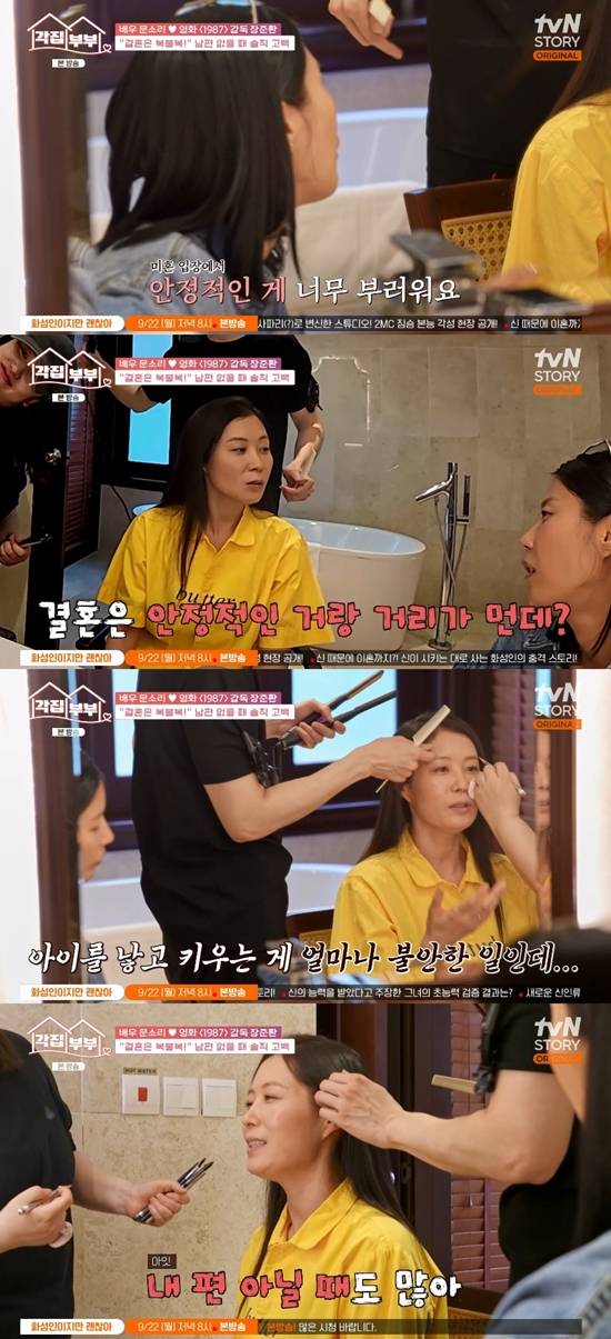 '각집부부'에서 문소리가 결혼 직전 남편이 전여친과 다정하게 통화를 했다고 폭로했다.