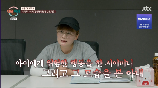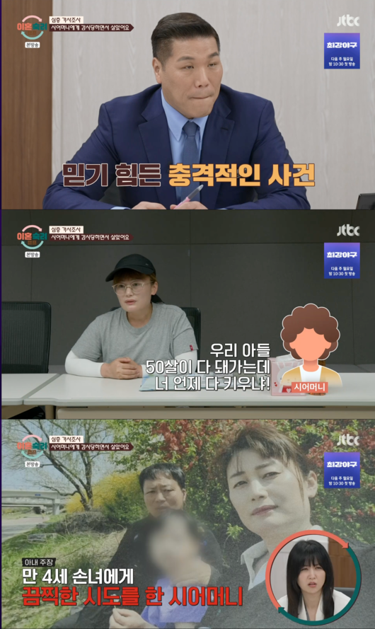 '이혼숙려캠프' 아내가 시어머니가 4살밖에 안 된 손녀의 목을 졸랐다는 충격적인 일화를 공개했다.