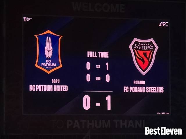 후반 45+1분에도 도이가 배후 침투를 통해 찬스를 잡았으나 아스프로가 몸을 날리는 수비로 겨우 막아냈으며, 후반 45+2분에는 빠툼의 205cm 거한 세이딘 은디아예의 바이시클 킥이 포항 우측 골문 기둥을 때리는 상황이 연출되기도 했다. 포항에 정말 운이 따른 후반 막판이었다. 다행히도 포항은 기어이 1골 차 리드를 지키는 데 성공했다. 포항의 1-0 승리였다.