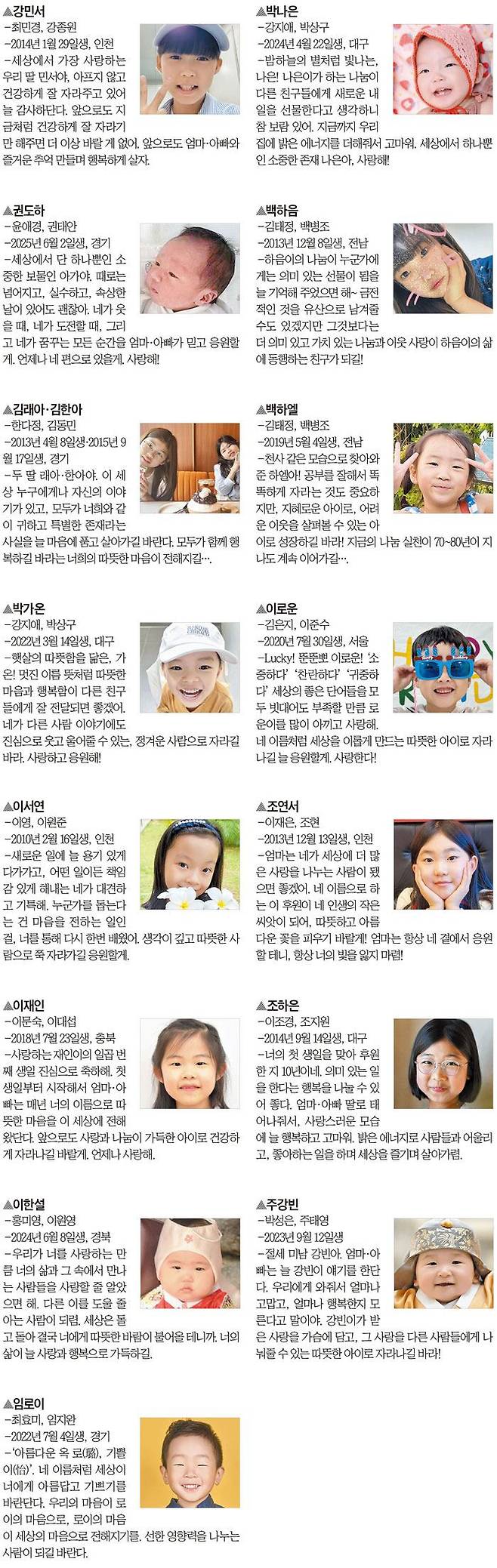 아이에게 나눔의 기쁨을 선물해 주세요. 아이 첫돌이나 생일 등을 기념해 초록우산 홈페이지(www.childfund.or.kr)의 ‘우리 아이 첫 기부’ 사이트를 통해 참여하실 수 있습니다. 매일아이 사이트(maeili.com)에서도 가능합니다. 매달 기부에 참여한 가족과 아이의 사진, 기념하고 싶은 날과 사연을 조선일보 ‘아이가 행복입니다’ 지면에 소개합니다. 엄마와 아이를 위한 매일유업 매일두 포인트 3만원과 기부 소식을 조선일보 1면 머리기사로 제작한 PDF 파일도 함께 드립니다.