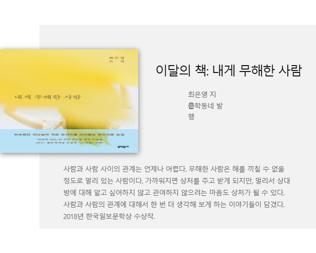 아마도 나보다 더 많은 것을 가진 사람, 나보다 더 많이 사랑받는 사람을 보면 부럽지만, '조금 덜 가지고 조금 덜 사랑받는 나도 그럭저럭 괜찮은 사람'이라는 믿음에서 올 것이다. 그리고 이런 믿음은 어릴 때부터 사랑받고 인정받고 보호받았던 경험에서 온다. 상연의 엄마 현숙은 초등학교 교사로서 훌륭하지만, 딸 상연에게는 엄격하기만 하다. 은중에게 보이는 다정함을 정작 딸 상연에게는 주지 않는다. 오빠가 죽었을 때는 아들을 잃어버린 상실감에, 남아 있는 상연을 돌보지 않는다. 그래서 "모두에게 사랑받는 너는 절대 나를 이해할 수 없어"라는 상연의 말이 외롭고 아프다.