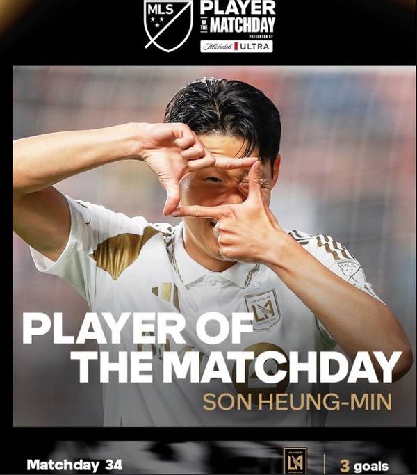 이어 19일에는 MLS 34라운드 '매치데이 MVP'로 선정됐다. 주말 경기를 치른 모든 MLS 선수 중 손흥민의 활약이 최고였다고 인정한 것이다. 매치데이 MVP는 매번 매치데이가 끝날 때마다 선정된다. 북미축구기자협회(NASR) 기자단 투표가 75% 반영되고, 소셜미디어(SNS) 인스타그램에서 진행되는 팬 투표가 25% 반영된다.