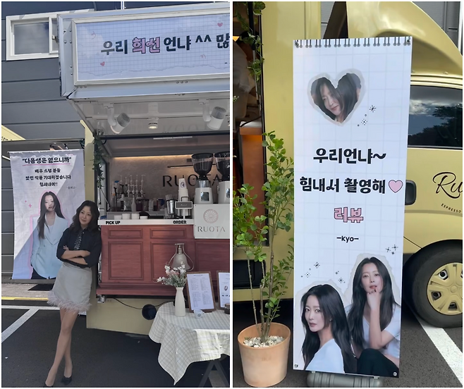송혜교가 김희선이 촬영 중인 현장에 간식차와 커피차를 보낸 것. 송혜교는 "우리 언냐~ 힘내서 촬영해. 라뷰"라고 남겼다.