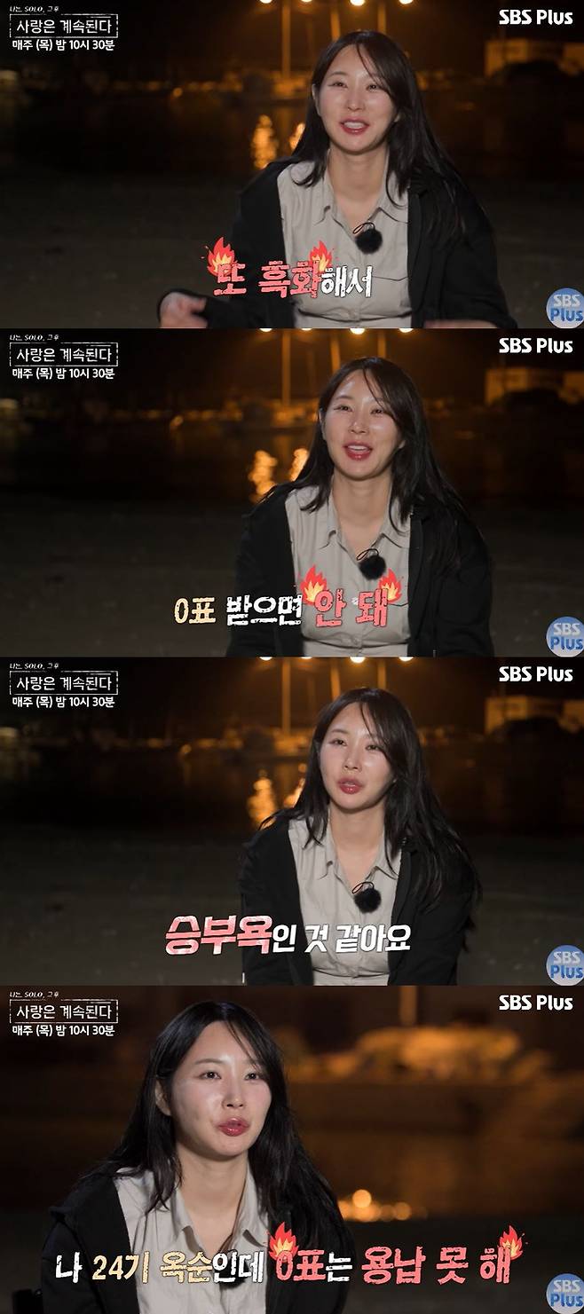 또 옥순은 "승부욕인 것 같다. 지기 싫은 것 같다. 아니면 '나 24기 옥순인데 0표는 용납 못해' 이런 것 같기도 하다"며 속마음을 털어놨다.