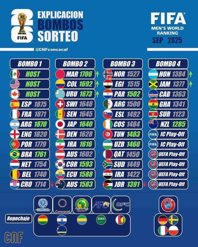 현재 FIFA 랭킹 순위표는 2026 북중미 월드컵 본선 조추첨 향방과 직결된다. 48개국 체제로 확대된 북중미월드컵 조추첨 시드는 FIFA 랭킹을 기준으로 포트1~포트4가 배정된다. 개최국 미국·멕시코·캐나다가 포트1에 자동 배정되고, 나머지 상위 9개 팀이 포트1을 채운 뒤 이후 순위에 따라 포트2~포트4가 결정되는 구조다.
