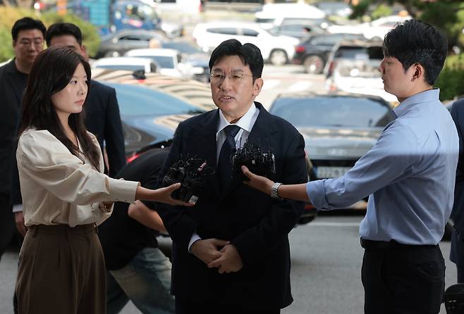 | ▲ 방시혁 하이브 의장이 15일 서울 마포구 서울경찰청 금융범죄수사대에 피의자 신분으로 출석해 취재진 질문에 답하고 있다. |