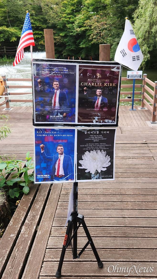 | ▲ 19일 오전 서울대학교 캠퍼스 내에 찰리 커크 추모 공간이 마련돼 있다. 해당 추모 공간은 서울대에 설립된 극우 성향 단체 '트루스 포럼'이 지난 16일부터 조성했다. |
