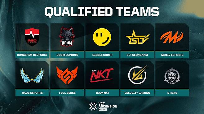 이번 대회에는 아시아 태평양 각 지역에서 선발된 10개 팀이 출전한다. 2025년 국제 리그인 VCT 퍼시픽에서 뛰었던 농심 레드포스는 스테이지 2 플레이오프 진출자 자격으로, 붐 이스포츠(BOOM Esports)는 2025년 챔피언십 포인트 상위 8위 안에 들면서 어센션 참가 자격을 얻었다.