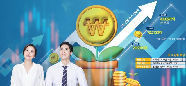 원금 보장과 고수익을 보장할 수 있다는 장점 덕분에 ELD 판매는 매년 가파르게 늘고 있다. 2023년 2조 2303억 원이던 KB국민·신한·하나·NH농협은행의 ELD 판매액은 지난해 7조 3733억 원으로 3배 넘게 급증했다. 올해 상반기에만 벌써 4조 6572억 원이 판매되며 연간으로도 지난해 판매액을 훌쩍 뛰어넘을 것으로 전망된다.