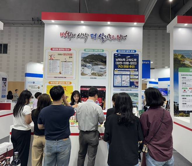 이번 의령군 홍보관에서는‘청년이 꿈꾸는 도시’, ‘매력있는 교육문화’, ‘풍요로운 활력 경제’를 주제로 청년지원정책과 미래교육원, 남북6축 고속도로 연장 추진 등을 소개했고 의령군 우수 정책 안내와 주요 관광지·음식 등 의령군을 전방위적으로 홍보했다.