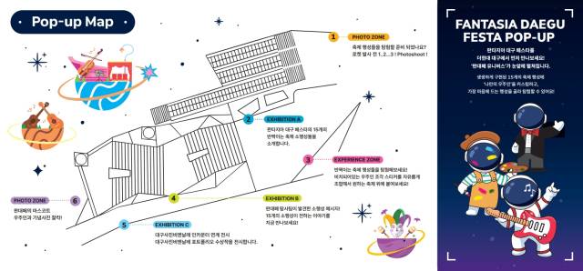 이번 팝업 전시는 오랜 시간 지역의 문화예술을 알려온 대구 축제들의 과거와 현재의 슬로건을 발췌한 전시와 포토존 등 6개 공간으로 구성된다.