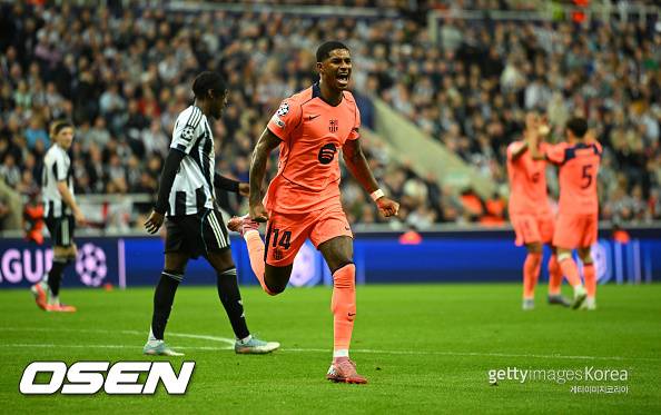19일(한국시간) 뉴캐슬 세인트 제임스 파크. 챔피언스리그 리그 페이즈 1차전에서 바르셀로나는 뉴캐슬을 상대했다. 벤치에서 출발할 수도 있었던 래시포드는 라민 야말의 부상으로 뜻밖의 선발 기회를 얻었다. 하지만 그는 그 찬스를 완벽히 증명해냈다.