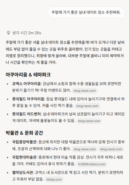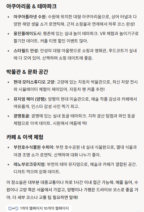 [Q&AI] 주말 실내 데이트 장소 추천 (서울, 경기)