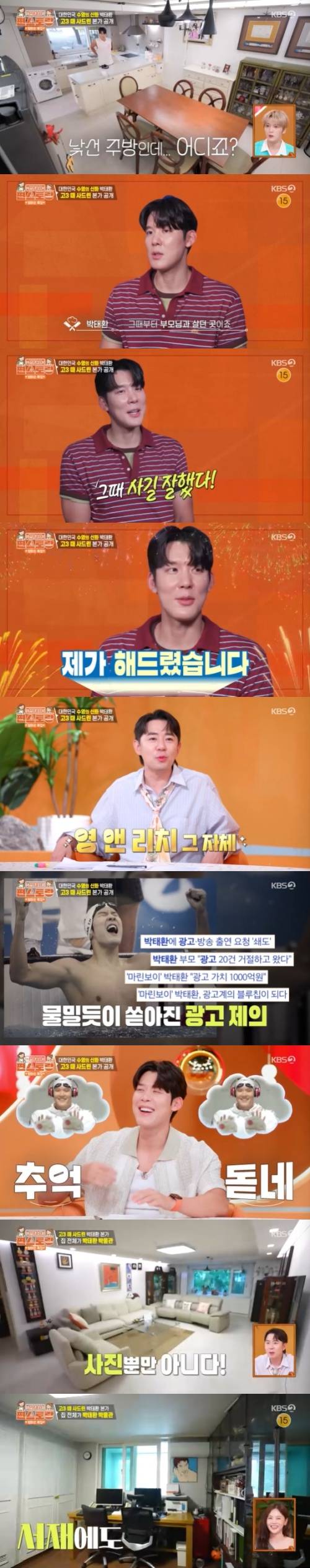 이때 화면에는 박태환의 수많은 광고가 나왔고, 붐은 "이걸로 아파트 샀다", 이연복은 "CF 최고 스타였다"며 웃었다.