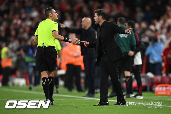리버풀 팬의 비매너? '퇴장' 시메오네의 해명, "경기 내내 욕설 퍼부었다"