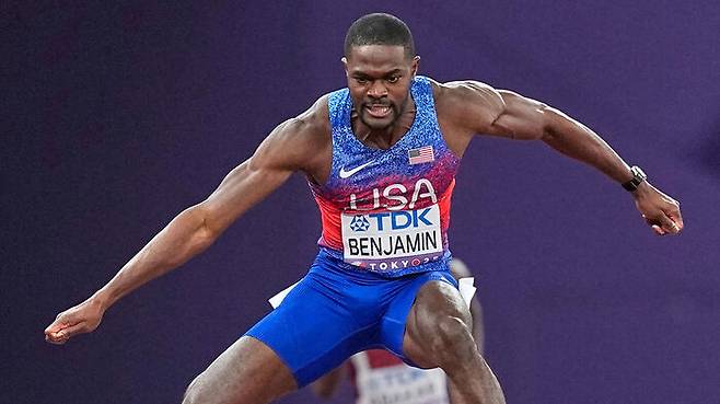 2019년 도하 세계선수권, 2021년에 벌인 2020 도쿄 올림픽, 2022년 유진 세계선수권에서 연거푸 2위에 머물고, 2023년 부다페스트 세계선수권에서는 3위로 떨어졌던 벤저민은 지난해 파리 올림픽에서 46초 46으로 우승해 메이저 대회 무관의 한을 풀었고, 이날 도쿄에서는 세계선수권 첫 개인 종목 금메달을 목에 걸었습니다.