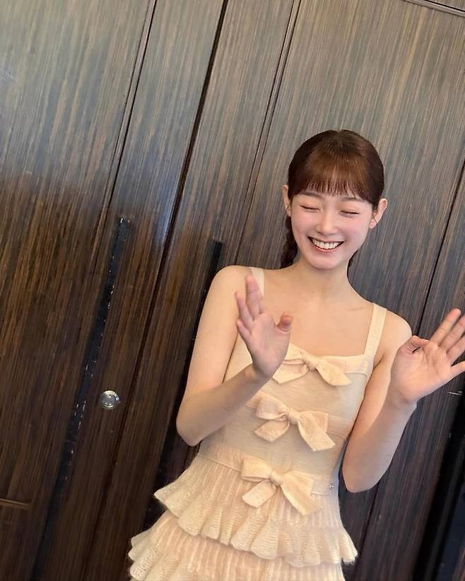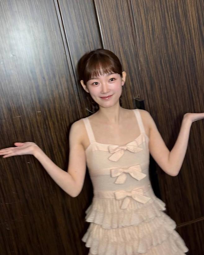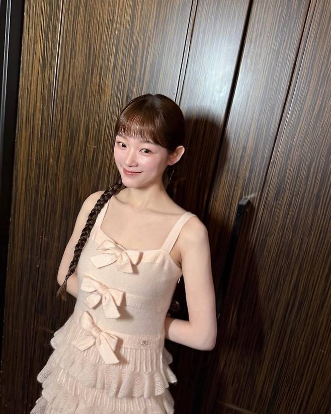 리본 디테일이 포인트인 핑크 드레스는 발랄하면서도 사랑스러운 매력을 한층 돋보이게 한다. 자연스럽게 번지는 미소와 함께, 동화 속 주인공 같은 순수한 에너지가 따뜻한 분위기를 더했다.