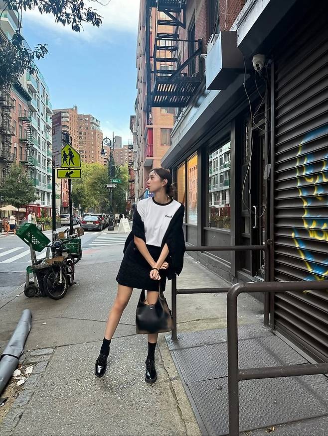 뉴욕을 배경으로 담긴 그녀의 모습은 영화 속 한 장면 같은 모던한 무드를 자아낸다. 시크한 블랙&브라운 스타일링은 도시적인 세련미를 드러내며, 일상과 패션 화보의 경계를 자연스럽게 허물었다.