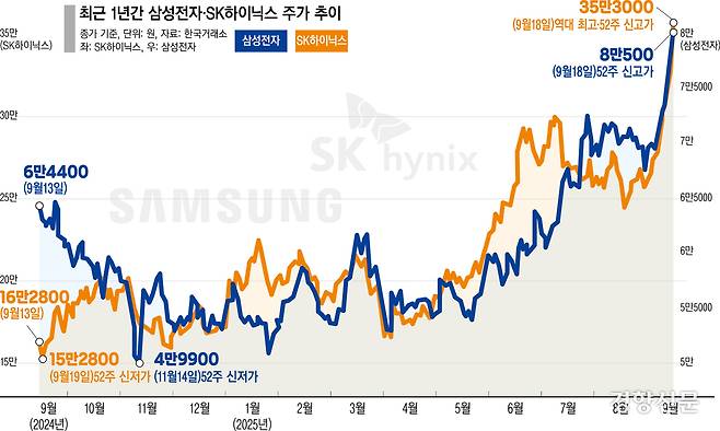 증권사도 낮춰왔던 눈높이를 다시 높이고 있습니다. 최근 SK증권은 삼성전자 목표주가를 11만원, SK하이닉스 목표주가를 48만원으로 높였습니다. NH투자증권(9만4000원), 한국투자증권(9만5000원), 미래에셋증권(9만6000원) 등도 이달 삼성전자 목표주가를 9만원 이상으로 높여 잡았습니다. 지난 2021년 1월 기록한 역대 최고점(9만6800원)을 넘길 수 있다는 기대감도 커지고 있죠.