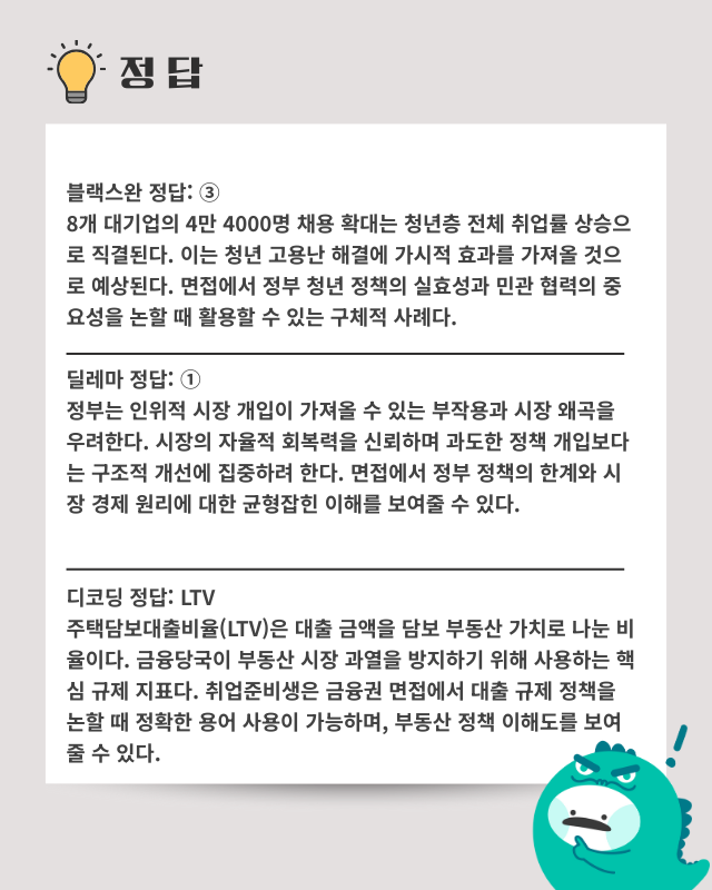 ■ 대기업 대규모 청년 채용 확대 선언: 이재명 대통령의 청년 고용 문제 해결 요청에 삼성·SK 등 8개 대기업이 총 4만 4000명의 신입 채용 계획을 발표하며 청년층에게 희망의 메시지를 전했다. 이에 따라 대통령실은 100대 기업까지 채용 확대에 나서달라고 요청하며 청년미래자문단 신설과 정부 위원회 내 청년 비율을 현재 5.4%에서 10%로 확대하는 등 체계적인 청년 고용 정책을 가속화하고 있는 상황이다.