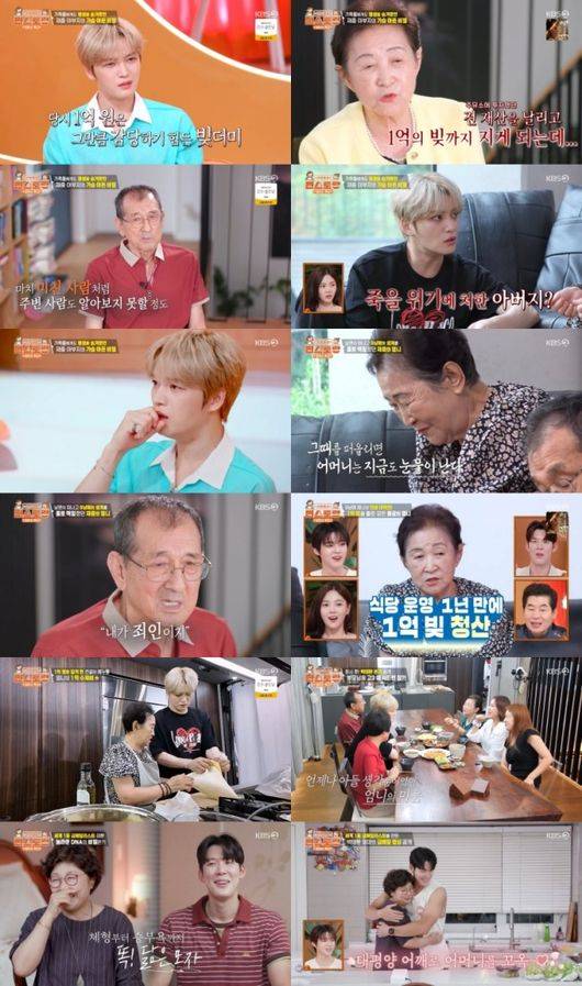 김재중 어머니는 “그때 생각하면 죽으려고 해도 죽을 수도 없고…”라고 말했다. 그럼에도 가족을 위해 계속 부딪힌 김재중 어머니는 우연히 식당을 시작하면서 인생역전 기회를 잡았다. 김재중 어머니는 족발, 수제비, 보리밥을 메뉴로 한 식당을 공주에 열었는데 SNS 등도 없던 당시 입소문을 통해 대박을 터뜨린 것. 김재중 어머니는 1년 만에 1억 빚을 모두 갚고 남편과 끌어안고 울었다고 회상했다. 이를 들은 김재중은 “엄마 대단하다”라며 크게 놀라고 또 뭉클해했다.