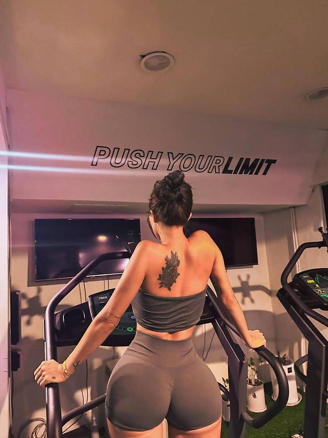 공개된 사진 속 제시는 한국의 한 헬스장에서 운동에 몰두하고 있는 모습이다.