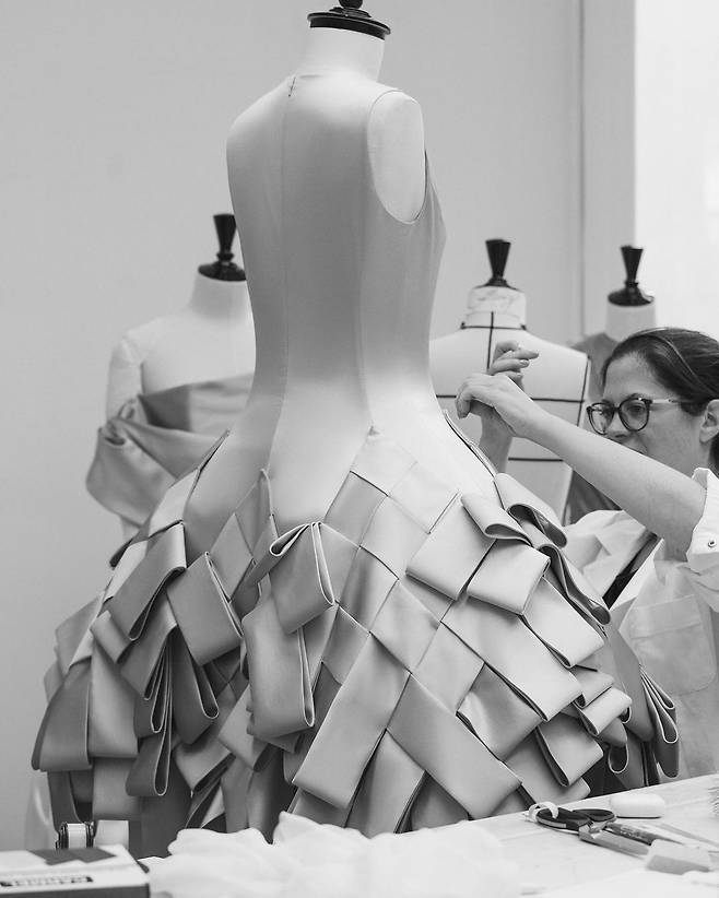 앤더슨이 픽한 또 한 명의 배우가 있습니다. 이탈리아 배우 알바 로르바허 역시 베네치아 국제영화제에서 볼륨감이 극대화된 드레스를 입고 등장했는데요. 짙은 블루 컬러의 드레스는 별다른 장식없이 그저 풍성하게 부풀린 실루엣 단번에 사람들의 눈길을 사로잡았습니다. 도대체 이 드레스가 어느 브랜드의 것이냐며 온라인 상에서 갑론을박이 펼쳐지기도 했죠. 그 결과는? 불필요한 장식 없이 실루엣 하나만으로 압도적인 존재감을 뿜어내는 모습은 바로 조나단 앤더슨의 디올이 추구하는 미학이죠.