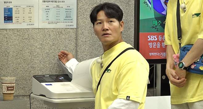 김종국이 파티 소식에 혈압을 재는 모습을 보인다.