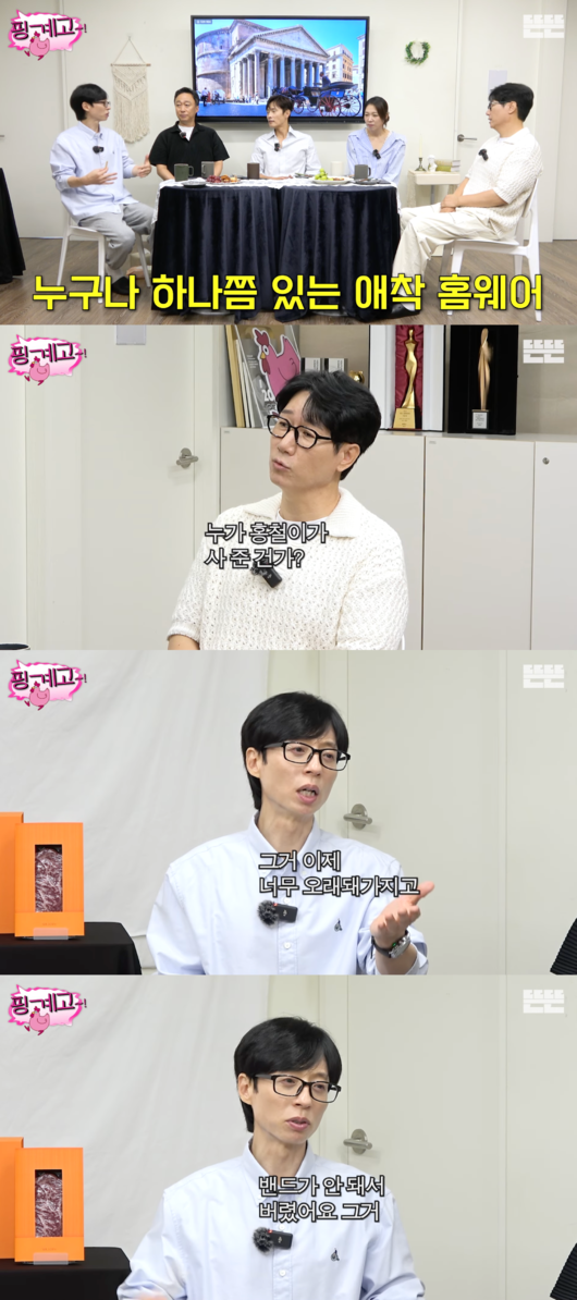 이를 듣던 지석진은 "너도 있지 않냐. 홍철이가 사준 거"라고 유재석의 유명한 애착 잠옷을 언급했다.