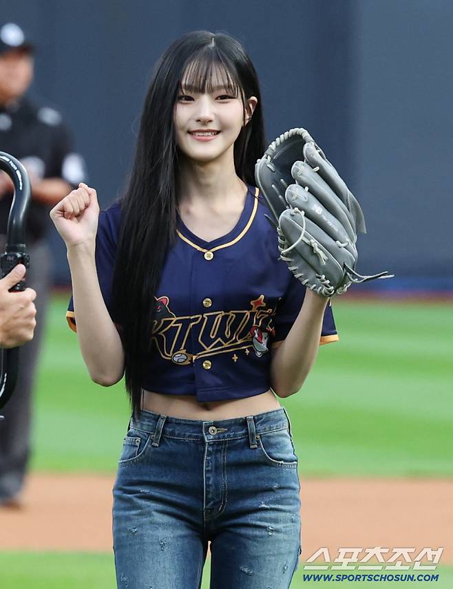 20일 수원 케이티위즈파크에서 열린 KT와 한화의 경기. 걸그룹 '키스오브라이프' 멤버 하늘이 시구를 했다. 밝은 표정을 시구를 마친 하늘. 수원=송정헌 기자songs@sportschosun.com/2025.09.20/