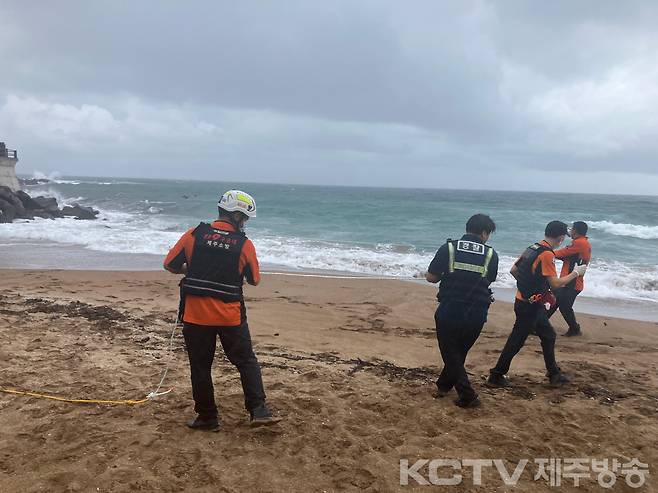소방과 해경, 경찰이 공동 대응에 나섰고 제주경찰청 중문파출소 소속 김양재 경사가 보드를 타고 해안가에서 300미터 떨어진 해상에 있는 익수자를 먼저 구조한 뒤 소방 구조대가 건넨 로프를 이용해 해안가로 이동 조치했습니다.