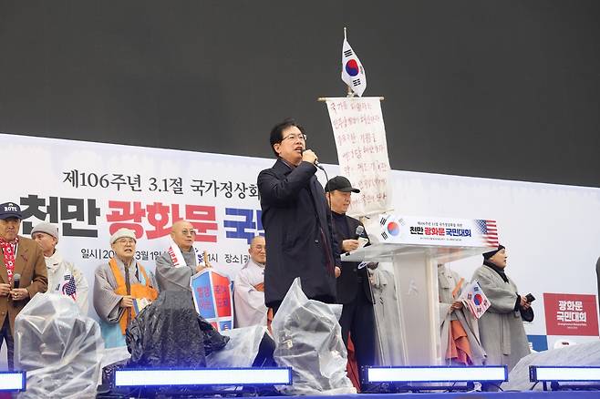 | ▲ 이만희 국민의힘 의원의 3.1절 탄핵 반대 집회 참가 당시 모습 |