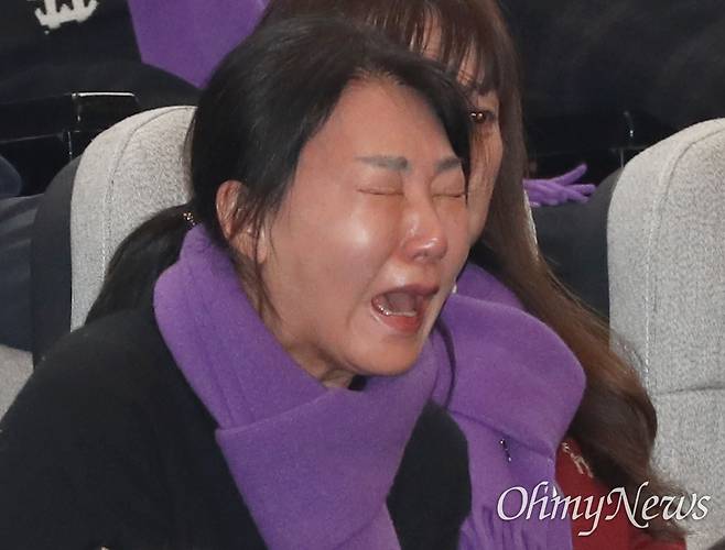 | ▲ 2024년 1월 9일 국회 본회의에서 이태원참사 특별법 표결을 앞두고 이만희 국민의힘 의원이 반대 토론에 나서자, 방청석에서 이를 지켜보던 한 유가족이 절규하고 있다. |