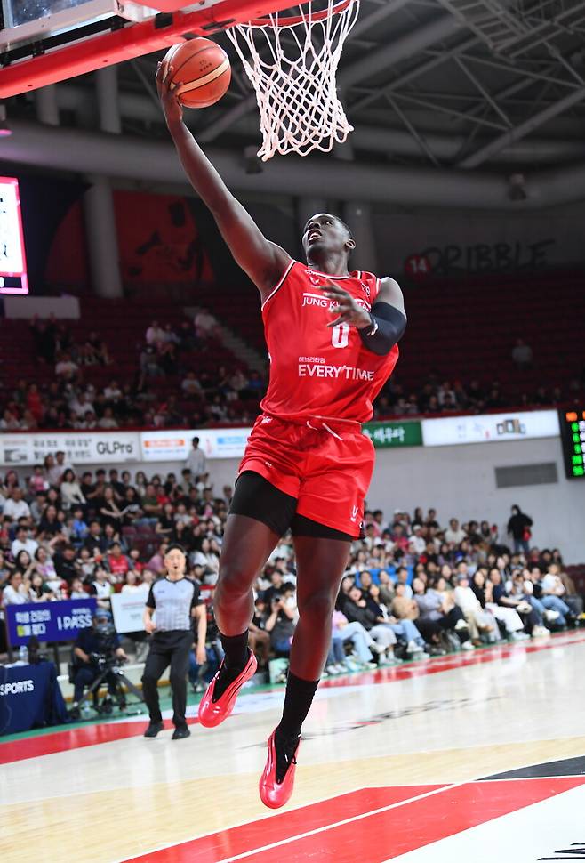 그렇지만 정관장은 11-19로 밀렸고, 유도훈 감독은 선수들을 차근차근 교체했다. 김경원(198cm, C)을 먼저 코트로 내보냈고, 브라이스 워싱턴(203cm, F)과 렌즈 아반도(188cm, F)를 동시에 투입했다.