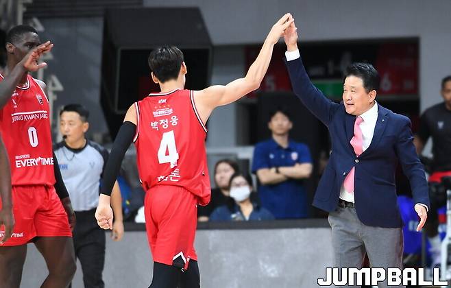 정관장은 1쿼터 16-24, 전반전 34-34로 소노에 우위를 점하지 못했다. 하지만 3쿼터 23-16으로 흐름을 바꾸는 데 성공했고, 결국 승리를 가져왔다. 이에 대해 유도훈 감독은 “어린 선수들이 수비에서 노력한 부분이 상대 에이스 체력을 소진 시켰고, 경기 막판 변준형, 박지훈 등이 해결하며 승리할 수 있었다”며 어린 선수들의 투지 있는 수비를 칭찬했다.