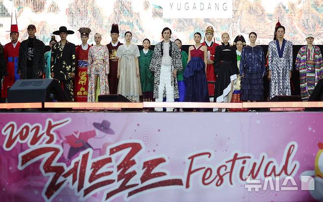[서울=뉴시스] 조성우 기자 = 20일 서울 마포구 홍대 레드로드 R6에서 열린 레드로드 페스티벌에서 한복 패션쇼가 진행되고 있다. 2025.09.20. xconfind@newsis.com
