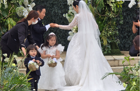 김병만 결혼식, 똑이·짱이 꽃길과 신부의 미소 속 ‘가족 족장’ 완성