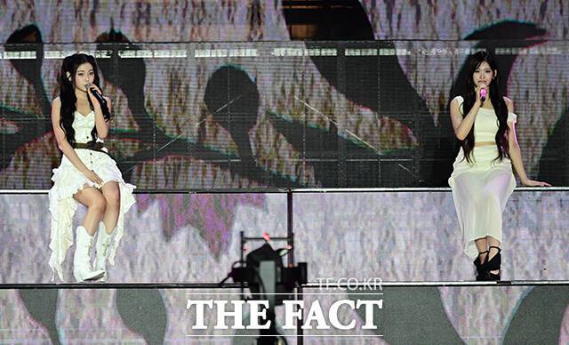 <더팩트> 가 주최하고 팬앤스타와 더스퀘어이엔엠이 주관하는 '2025 더팩트 뮤직 어워즈(THE FACT MUSIC AWARDS, TMA)'가 20일 오후 '마카오 아웃도어 퍼포먼스 베뉴'에서 열린 가운데 엔믹스 규진과 아이브 이서가 합동 무대를 펼치고 있다. 더팩트>