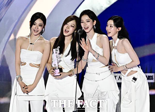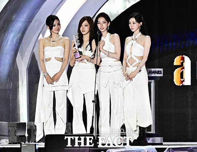 <더팩트> 가 주최하고 팬앤스타와 더스퀘어이엔엠이 주관하는 '2025 더팩트 뮤직 어워즈(THE FACT MUSIC AWARDS, TMA)'가 20일 오후 '마카오 아웃도어 퍼포먼스 베뉴'에서 열린 가운데 그룹 에스파가 심사위원 특별상을 수상한 뒤 소감을 밝히고 있다. 더팩트>