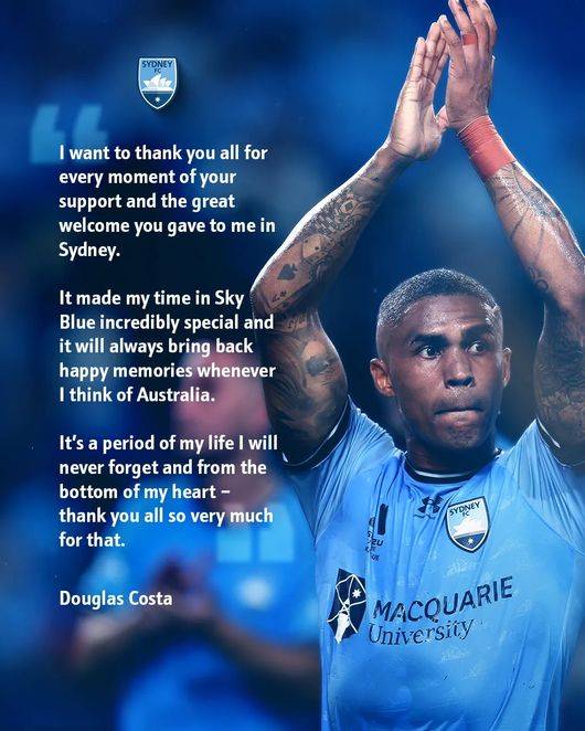 한때 월드클래스로 불렸던 더글라스 코스타(35)가 불명예스럽게 시드니 FC와 작별하게 됐다.