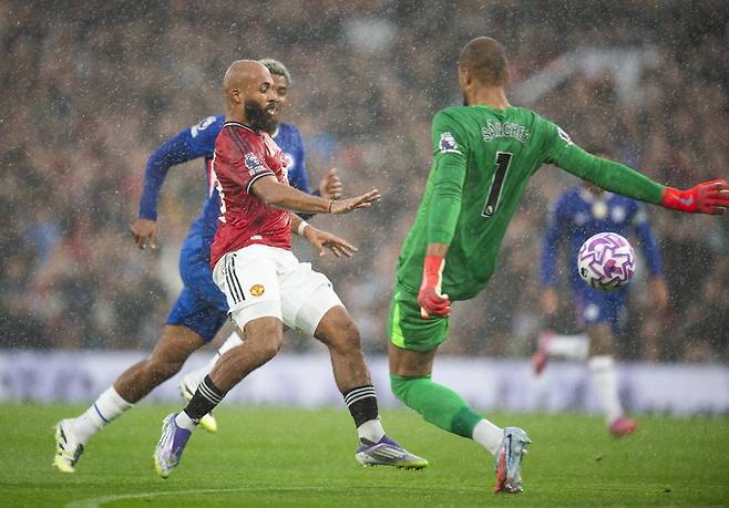 "아모림 한숨 돌렸네" 맨유, 퇴장 오간 난전 끝에 첼시 2-1 제압...리그 9위 도약