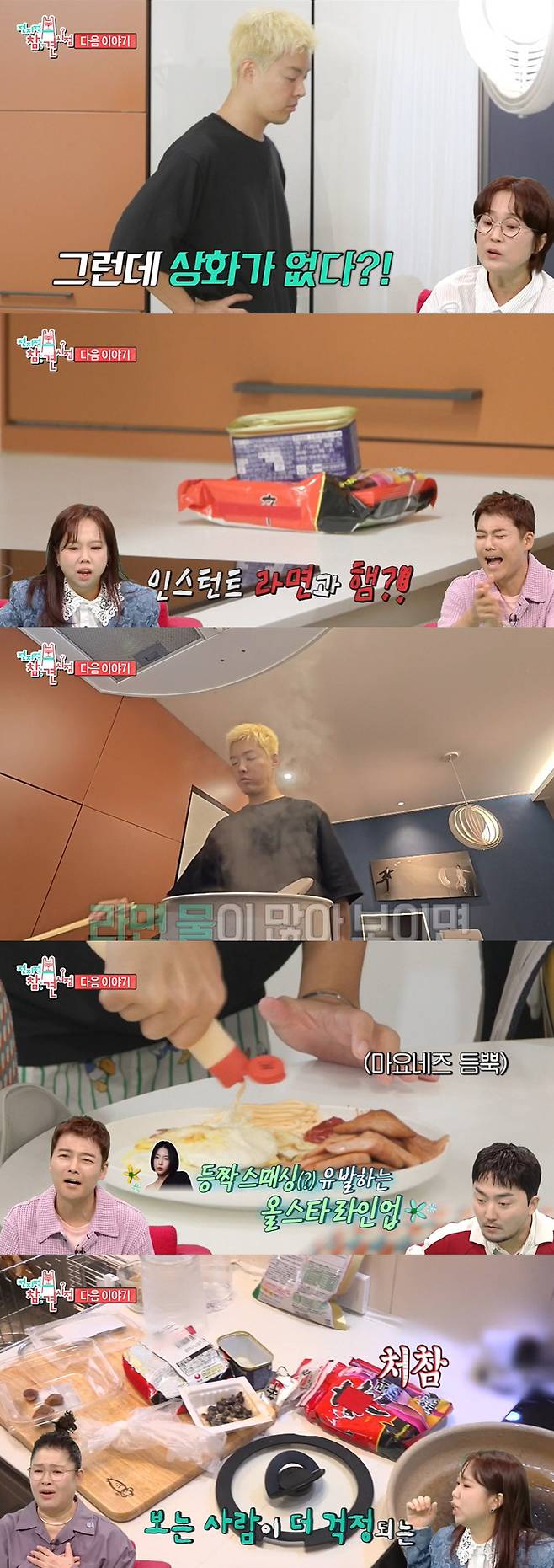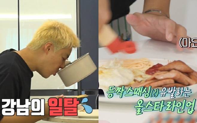 그런데 이상화가 사라지자 강남은 바로 먹방을 펼쳤다. 라면을 2개 끓이는가하면 마요네즈를 듬뿍 찍어 먹어 놀라움을 자아냈다. 이를 지켜보던 패널들은 "바로 등짝 맞겠다. 이상화 씨가 우리에게 전화오는 거 아니냐"고 걱정했다.