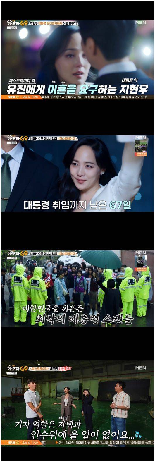 20일 방영한 MBN 리얼 버라이어티 ‘가보자GO 시즌5’(이하 ‘가보자고’)에서는 MBN 수목 미니시리트 ‘퍼스트레이디’의 세트장이 공개됐다. 대통령 역할의 지현우의 인수위원회 사무실과 대통령 부부의 자택이 공개됐다.