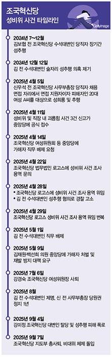 사건이 알려지기 시작한 것은 지난 5월. 한 혁신당 당직자가 지난해 7월부터 10개월 가까이 상사로부터 지속적인 성추행을 당했으며 당 윤리위원회와 여성위원회에 피해 사실을 알렸으나 진상 조사가 이뤄지지 않았다고 밝혔다. 이들은 당시 수감돼 있던 조 비대위원장에게도 수차례 편지를 보냈으나 제대로 된 진상 조사는 없었다.