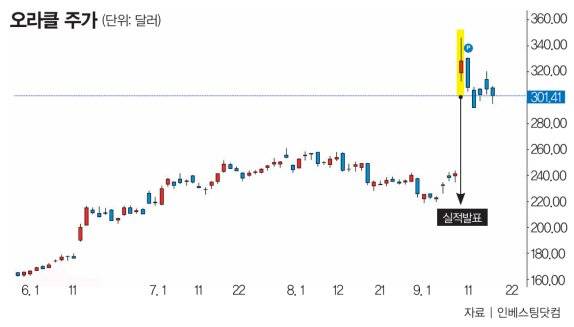 글로벌 클라우드 컴퓨팅 기업 오라클의 6~8월 실적이 발표되자 월가 애널리스트들은 이같이 평가했다. 오라클 주가는 9월 10일(이하 현지 시간) 실적 발표 후 하루 만에 40% 넘게 급등했다(그래프 참조). 이는 1992년 이후 최대 상승폭이다. 창업자이자 최고기술책임자(CTO)인 래리 엘리슨은 일론 머스크 테슬라 최고경영자(CEO)를 제치고 한 때 세계 1위 부자 자리에 오르기도 했다. 급등의 핵심은 오픈AI와 체결한 3000억 달러(약 410조 원) 규모 인공지능(AI) 클라우드 인프라 계약이다. 과거 기업용 데이터베이스 강자였던 오라클은 이번 대규모 계약을 계기로 AI 클라우드 시장 주도권을 되찾을 것이라는 기대를 받고 있다.