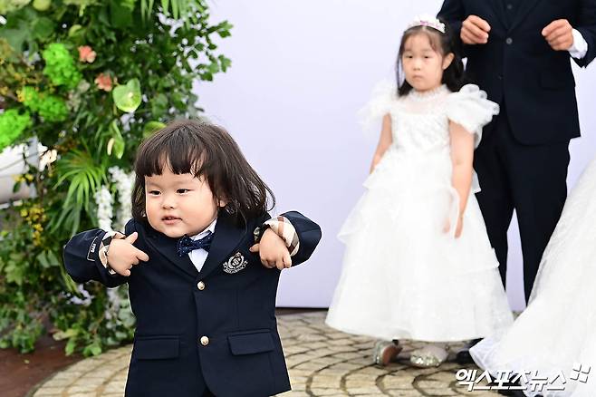 이날 김병만은 현 씨와의 사이에서 가진 자녀 둘과 함께 자리해 시선을 끌었다. 김병만을 똑닮은 딸과 아들은 저마다 드레스와 턱시도를 착용한 채 달려와 아빠의 손을 잡으며 단란한 가족의 모습을 연출했다.